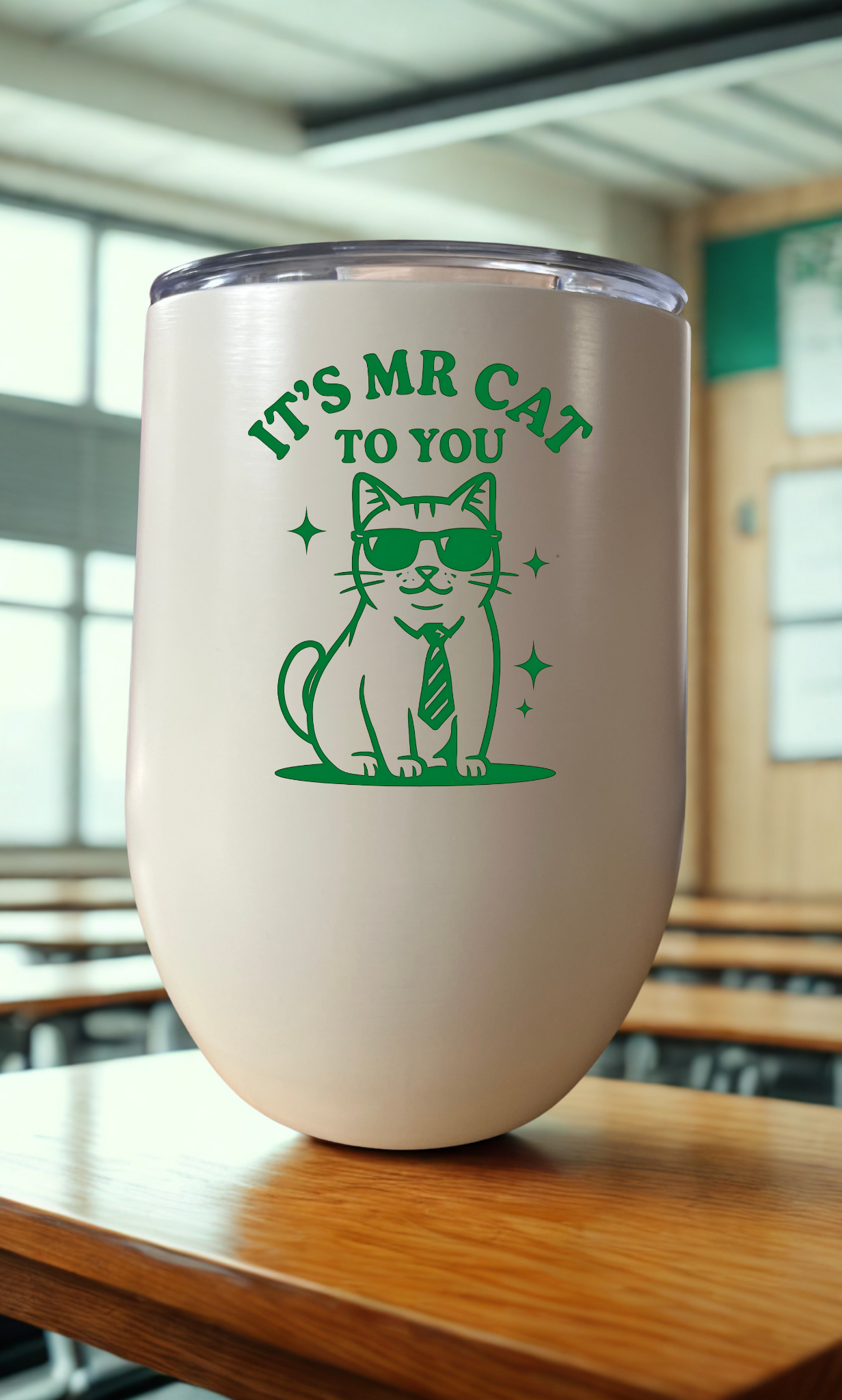 Looking to add a bit of fun to your morning coffee? This "It's Mr. Cat to You" drinkware is perfect for the educator who loves a bit of playful authority and, of course, cats. The design features a dapper cat in a tie, looking like it's ready to take the register and expects nothing less than your full attention.