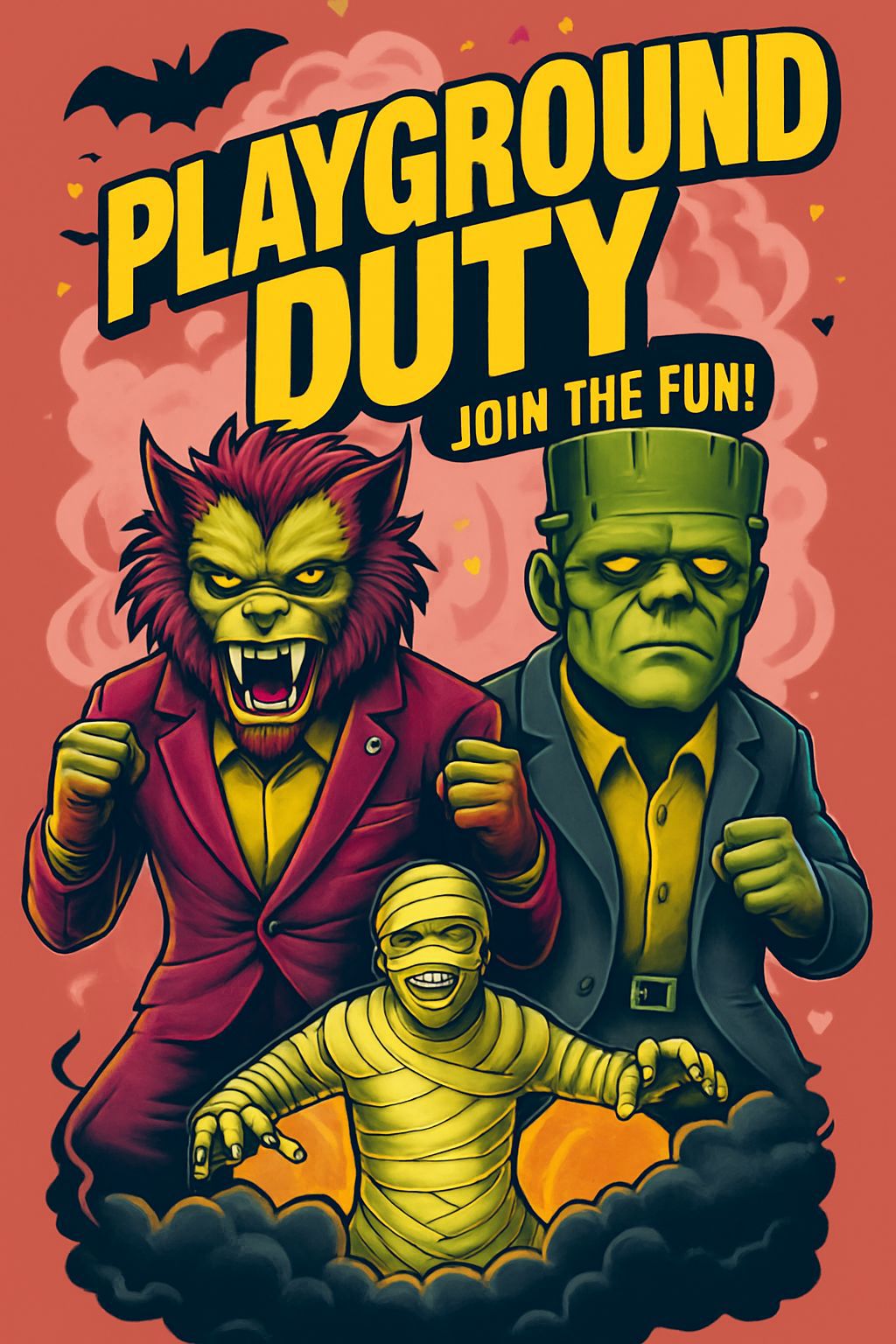 Introducing the "Playground Duty" drinkware collection, the perfect companion for every educator's most monstrous task! This isn't just a cup; it's a badge of honour for those who brave the playground. Featuring a hilarious, retro-style illustration of a werewolf, Frankenstein's monster, and a mummy ready for action, our cups are designed to make you smile, even when you're surrounded by chaos.